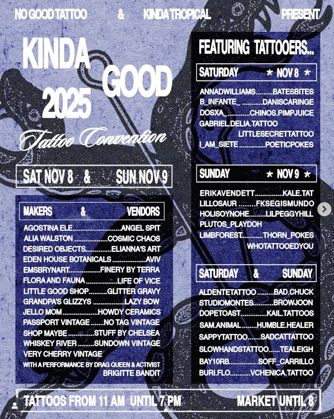 Sign up starts at 11am. Please come by and say hi. There will be so many amazing tattooers and venders.